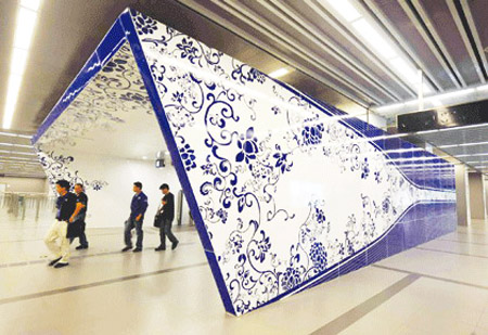 奧運支線北土城站具有“青花瓷”特色的出入口。圖片來源:CCTV
