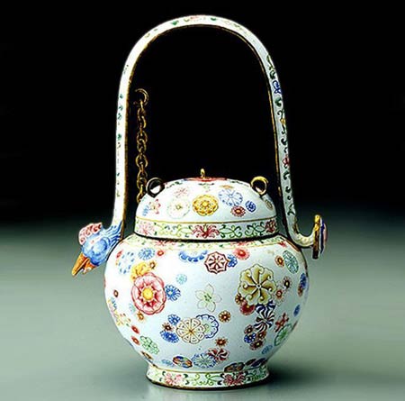 景泰藍(lán)又名琺瑯,是一種金屬工藝品,以銅為胎,經(jīng)掐絲、點藍(lán)、燒藍(lán)、磨光鍍金而成。成品有各種器皿、燈具、煙具等,既有小不盈寸的案頭擺設(shè)及首飾,也有大型的廳堂陳列品。,起源于元朝,盛行于明朝景泰年間(1450年-1456年)是中國傳統(tǒng)手工藝品,至今已有幾百年的歷史。因其釉料顏色主要以藍(lán)為主,古稱為景泰藍(lán)。