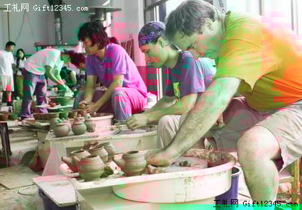 8月30日,在第四十三屆國際陶藝學會大會淄博會場創(chuàng)作營暨2008國際木火節(jié)活動現(xiàn)場,來自阿根廷的陶藝家正在專心制作陶藝品。