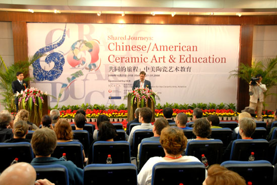 10月27日上午9時(shí),2008“共同的旅程—中美陶瓷藝術(shù)教育” 國(guó)際研討會(huì)在景德鎮(zhèn)陶瓷學(xué)院隆重召開(kāi)。