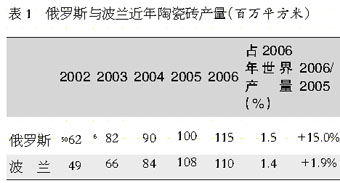2006年俄羅斯與波蘭的陶瓷磚產(chǎn)量排全球分別是第13位和第14位!