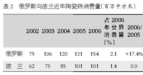 2006年俄羅斯與波蘭陶瓷墻地磚消費(fèi)量在全球排名分別是第9位和第17位!