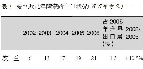 波蘭的陶瓷磚出口量在逐年上升,2006年出口排名全球第13位,而俄羅斯則沒有出口方面的報(bào)道。