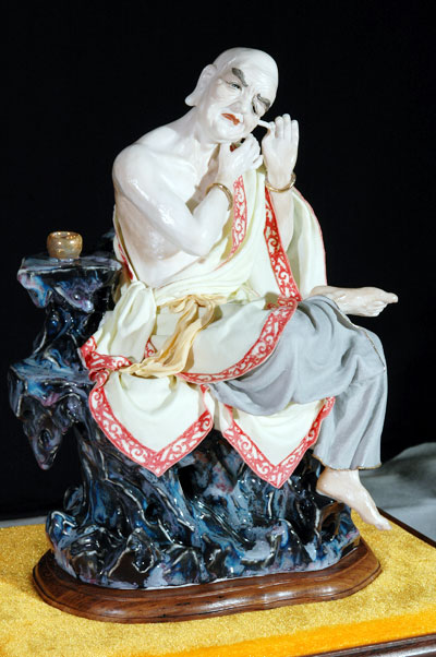 1991年邱老退休后,組建了德化鳳凰陶瓷雕塑研究所,專心致力于瓷塑研究與創(chuàng)作。多年來他矢志不移,廢寢忘食,專心沉浸在自己人生第二個春天的理想中。創(chuàng)作出許多藝術(shù)精品,譬如傳統(tǒng)歷史題材人物孔子、諸葛亮、楊貴妃等。