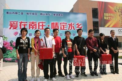 2008年11月16日,佛山市第二屆"愛(ài)在南莊·情定水鄉(xiāng)"集體婚禮--水鄉(xiāng)田園風(fēng)光·生態(tài)總部基地在中國(guó)陶瓷產(chǎn)業(yè)總部基地現(xiàn)場(chǎng)圓滿舉行。數(shù)十對(duì)新人,南莊鎮(zhèn)黨委委員王斌,南莊鎮(zhèn)宣傳辦主任徐錦棠,南莊鎮(zhèn)文化站站長(zhǎng)甘小平等領(lǐng)導(dǎo),陶瓷藝術(shù)家工藝美術(shù)師、佛山市工藝美術(shù)家創(chuàng)作院副院長(zhǎng)黃強(qiáng)華,中國(guó)陶瓷產(chǎn)業(yè)總部基地相關(guān)負(fù)責(zé)人,以及眾多媒體參加了此次活動(dòng)。此外,活動(dòng)還吸引了慕名前來(lái)的80多位攝影愛(ài)好者的熱情參與。