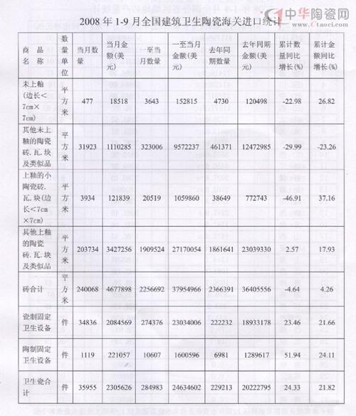 2008年1-9月全國建筑衛(wèi)生陶瓷海關(guān)進(jìn)口統(tǒng)計(jì)