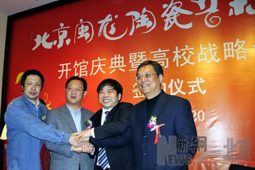 12月20日,中央美術(shù)學(xué)院、清華大學(xué)美術(shù)學(xué)院、景德鎮(zhèn)陶瓷學(xué)院與北京閩龍?zhí)沾伤囆g(shù)館簽署了戰(zhàn)略合作協(xié)議書。雙方將積極探索高等院校陶瓷創(chuàng)意設(shè)計(jì)能力與陶瓷企業(yè)實(shí)踐相結(jié)合的發(fā)展模式,力求使高校的陶瓷原創(chuàng)設(shè)計(jì)通過陶瓷企業(yè)的論證,快速投入應(yīng)用和市場(chǎng)營(yíng)銷,從而形成具有自主知識(shí)產(chǎn)權(quán)的中國(guó)陶瓷制品。
