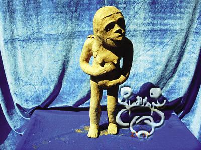 陶塑女子人體:9000年前(新石器)的陶塑女子人體。這是那時人們尊崇的女神像,突出其乳房與懷孕的腹部,歌頌女性生育的功勞。