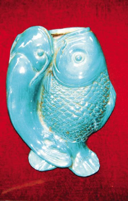 該藏品是清朝初年吳三桂叫人做的。他鎮(zhèn)守云南時,當?shù)貪h族女子很少,而漢族軍人又不愿娶少數(shù)民族女子為妻,所以吳三桂就叫人做了這種雙魚花插,兩條不同種的魚交尾(交配),能產(chǎn)生優(yōu)良品種的后代。這也體現(xiàn)了古人的優(yōu)生思想。(來源:東南網(wǎng))