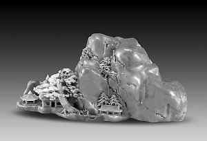 圖1:昌化雞血雕樓閣山子 瀚海拍品成交價(jià)1344萬(wàn)元,為中國(guó)當(dāng)代工藝品競(jìng)買交易市場(chǎng)的最高紀(jì)錄