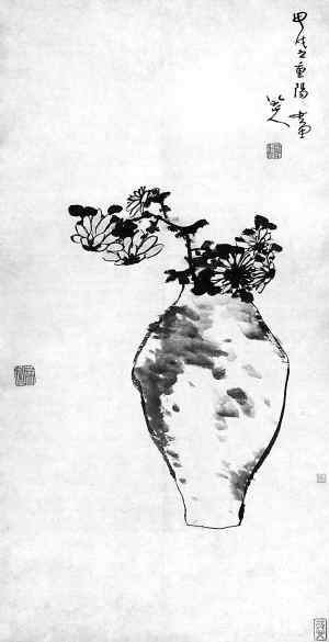 圖2:朱耷 《瓶菊?qǐng)D》(局部) 中國(guó)嘉德二○○八春拍拍品 成交價(jià)三千一百三十六萬(wàn)元