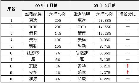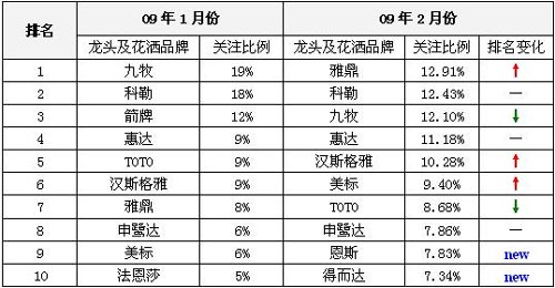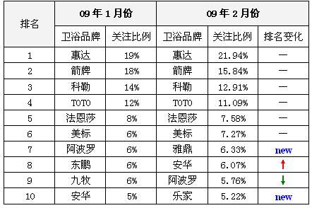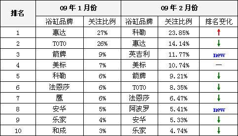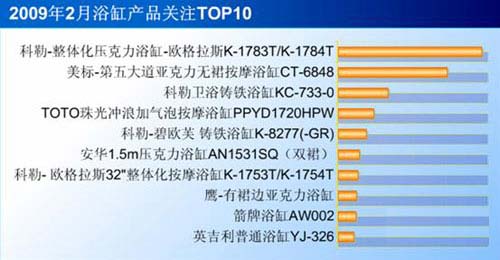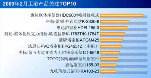 通過(guò)對(duì)09年2月份衛(wèi)浴市場(chǎng)品牌、產(chǎn)品關(guān)注度的一系列調(diào)查,結(jié)論如下: