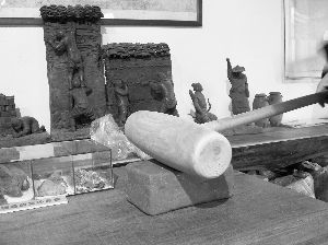 紫砂泥粉和水后,就用這樣的木槌反復敲擊、碾壓