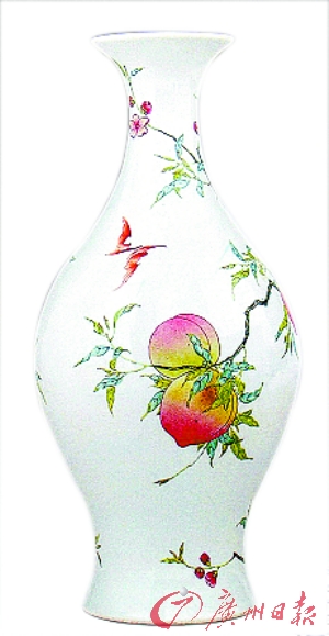 | 雍正粉彩壽桃蝙蝠紋橄欖瓶 |