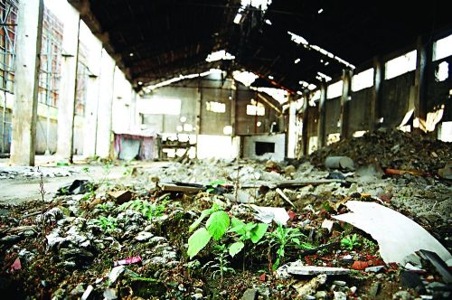關(guān)閉的陶瓷廠內(nèi)長出的植物。陶瓷廠從停止生產(chǎn)到拆除,經(jīng)過了很長一段時(shí)間