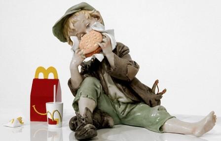 巴福德的這類新銳作品包括吃麥當勞、肯德基的英國兒童,手持數(shù)碼相機卻對身邊摔倒朋友置若罔聞的組合,以及站在玫瑰叢中拿著手槍的妙齡少女等。作品中呈現(xiàn)出的黑色幽默,試圖表現(xiàn)社會中的有趣現(xiàn)象。這一展品的主題是“好與壞,以及美女”,折射出老一代的人們對當今社會的年輕人的看法。巴福德稱,有人對他的作品很感興趣,也有人覺得“可怕”。