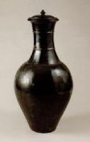 說(shuō) 明: 淡紅陶胎,細(xì)膩堅(jiān)致。滿施以錳為著色劑的黑釉,釉色黑中帶紫,釉面泛虹光,平整光潤(rùn),底無(wú)釉。