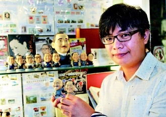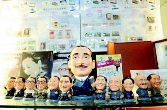什么商品最受陸客歡迎?吳松洲指著玻璃柜里一排“政壇明星公仔”,包括抱黑貓白貓的鄧小平、手拿十大建設(shè)藍圖的小蔣,還有馬英九、蕭萬長等,笑說這是店里的“招財貓”,許多陸客一買就是二十幾個。