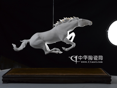 建白瓷的品質(zhì)與人類心中最美好的希望與理想相交織相融合,騰飛的駿馬寓意了祖國的繁榮昌盛,人們的勇往直前,如夢境之物般稍縱即逝又真實而美麗的呈現(xiàn)在我們面前。(蘇曉霞)