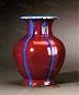 乾隆早期窯變紅釉尚能保持雍正時紅藍色交織變幻的特點,隨后演變?yōu)榧t藍面積相等或紅色大于藍色的面積,但達到了模仿鈞窯的預期效果。當然也有少數(shù)例外。器物口沿處以及底部的釉色與雍正時期基本一樣。