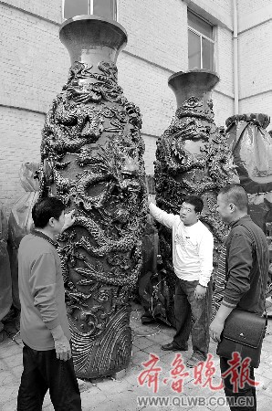 中國網(wǎng)·濱海高新訊 世界上最大的陶瓷龍瓶17日在淄博市淄川區(qū)燒造成功,該瓶高5米、最大直徑1.8米、重5噸,取名“江山永定”,由山東淄博辰浩陶瓷藝術(shù)研究設(shè)計院制作,采用傳統(tǒng)的制陶工藝,在窯爐內(nèi)雕塑而成! 劉振澤 閆盛霆 王恒 攝影報道