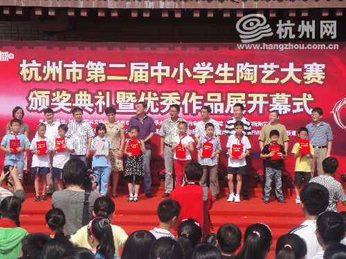 2009年9月25日上午,“塑我中華風(fēng)采”杭州市第二屆中小學(xué)生陶藝大賽成功落下帷幕,頒獎(jiǎng)典禮暨優(yōu)秀作品展開幕式在杭州南宋官窯博物館舉行。杭州市園文局副局長王宏偉、是文明辦未成年處處長康志友、市教育局宣傳處處長張志龍等相關(guān)領(lǐng)導(dǎo)以及獲獎(jiǎng)師生出席了本次頒獎(jiǎng)典禮。