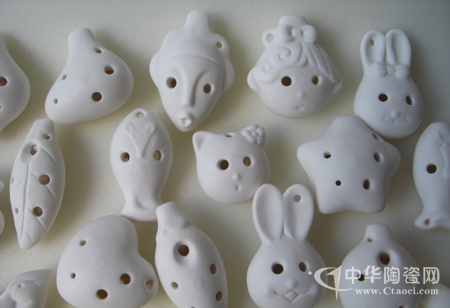 聞福建德化有一年輕男子創(chuàng)作出陶瓷新品——陶笛。筆者聞訊趕到,走進方先生的工作室,形色各樣的小陶瓷器件映入眼簾,有紅、黃、綠等顏色,呈槍形、潛水艇形、扁形、球形以及各種動物的頭像形狀,十分精致小巧,惹人喜愛。