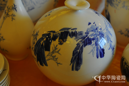 在陶瓷上作畫與宣紙是兩種截然不同的創(chuàng)作載體,對當(dāng)代國畫名師來說是一種新的挑戰(zhàn)與體驗。中國美協(xié)理事、安徽省美協(xié)副主席張松說:“在陶瓷上繪畫要比宣紙上繪畫難,不是那么容易。但是,在陶瓷上繪畫同時也能掘發(fā)創(chuàng)作家的激情,一旦激情被掘發(fā)美術(shù)繪畫就能在陶瓷上淋漓盡致地體現(xiàn)。”