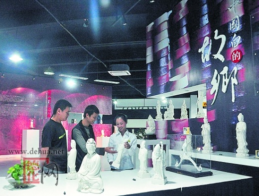 在海西旅游發(fā)展戰(zhàn)略中,德化縣著力打造海西陶瓷文化旅游精品線,深挖細(xì)掘獨(dú)具特色的德化民窯文化,充分發(fā)揮陶瓷文化獨(dú)特魅力,整合以陶瓷博物館、屈斗宮古窯址、祖龍宮、龍窯、工業(yè)旅游示范點(diǎn)為主的陶瓷民窯文化旅游精品線。特別是努力將陶瓷工業(yè)與陶瓷文化旅游有機(jī)結(jié)合,目前全縣有10多家陶瓷企業(yè)設(shè)置了傳統(tǒng)手拉坯項(xiàng)目,其中鼎晟藝瓷、儒苑禮瓷正積極申報(bào)國家級(jí)工業(yè)旅游示范點(diǎn)。