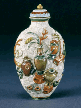 中國古代陶瓷文化作品之清粉彩雕瓷博古圖鼻煙壺