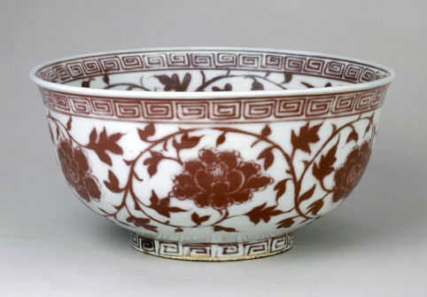 中國(guó)古代陶瓷文化作品之釉里紅纏枝牡丹紋碗