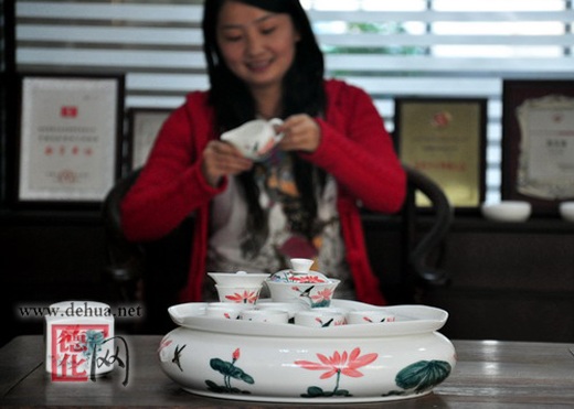 記者看到,“歲寒四君子”的梅、蘭、竹、菊成為德化瓷器創(chuàng)作的新題材。一套普通的茶具,畫上傲霜斗雪的梅花,便具有了“梅花歡喜滿天雪,留取清白在人間”的雋永意境,在休息喝茶之中起到潛移默化、潤物無聲的效果。孤標(biāo)亮節(jié)的菊花、剛直豪邁的青松與德化陶瓷相結(jié)合,成了中華民族不畏強(qiáng)權(quán)、不屈不撓精神的體現(xiàn)。高雅有節(jié)的綠竹,激勵著黨員干部要像竹子一樣虛懷若谷、剛勁有節(jié)。繪有“出污泥而不染,濯清漣而不妖”的荷花圖案的杯子,配以“清茶甘甜可口,廉氣清香潤心”的格言警句,成為黨員干部作為激勵自己潔身自好的座右銘。