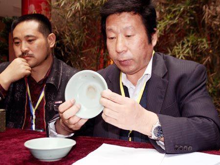 直徑不到十厘米,釉面為粉青釉的一對平底小盤,十多年前被成都近郊某老農(nóng)修房子時從地底下挖出并當(dāng)做了煙灰缸。在充當(dāng)煙灰缸很長一段時間后,又以五十元錢買給了收藏家。10月28日,這對平底小盤被送到了中國收藏家協(xié)會陶瓷收藏委員會主任荊治中手中。在仔細(xì)鑒定后荊治中肯定地表示,這對小盤為出自南宋時期的龍泉窯粉青釉,而且是龍泉窯的精品代表,“保守估計一只得值好幾十萬。”