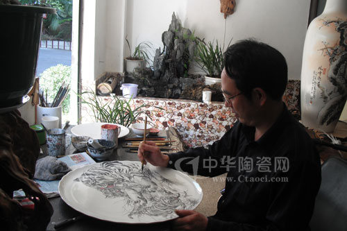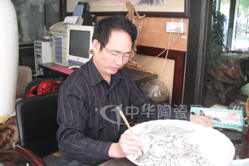 陳行一介紹說,陶瓷繪畫受工藝、器型、材質(zhì)等方面的制約,與宣紙相比難度要加大,要設法發(fā)掘陶瓷繪畫潛在的表現(xiàn)力,必須結合器形進行合理的構思、布局,揚長避短,讓陶瓷亮麗的材質(zhì)與畫面有機的結合起來,在有限的瓷器里創(chuàng)作出無限的境界。還介紹說,繪畫講究筆墨線條等的對比變化,例如粗細、疏密、虛實、濃淡等,從而產(chǎn)生線條的節(jié)奏韻律,講究“氣韻生動”、“以形寫神”、“骨法用筆”,以渾然天成、本色自然、含蓄蘊藉為品位,遵循“作品妙在似與不似之間,大似為媚俗,不似為欺世”的創(chuàng)作原則。