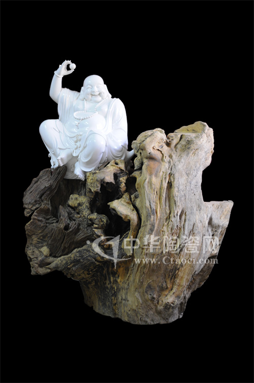 瓷雕與根雕的完美藝術(shù)融合,突破了瓷雕與根雕本身的藝術(shù)內(nèi)涵,不但提升了作品的文化品位,而且給人無限情趣和無窮思緒,徜徉在“天、地、人”之間。瓷雕與根雕的結(jié)合,增強(qiáng)了陶瓷藝術(shù)的空間感,置陶瓷于自然根雕中,滿足了人們向往自然、回歸自然、返樸歸真的藝術(shù)心理追求;在根雕上置放陶瓷精品,收縮了根雕的野性,賦予根雕新的精神、文化內(nèi)涵;睘楹,化寫實(shí)為抽象,從重技藝到重觀念,王大山采用現(xiàn)代觀念,將瓷雕與根雕的完美藝術(shù)相融合,飽含著內(nèi)斂的藝術(shù)張力,推藝術(shù)為新的境界,“此時(shí)無聲勝有聲”。(小俠、小米)