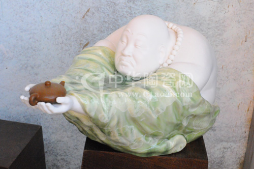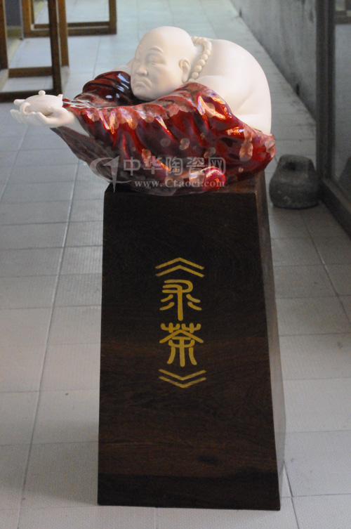 藝術(shù)來源于生活,而又高于生活。顏松柳,是在一次與友人的閑聊中,獲得靈感,憑著對(duì)友人的形態(tài)印象和交談過后的心得,設(shè)計(jì)了《求茶》。作品通過表現(xiàn)人和物之間的對(duì)話與交流,以求“味”和“心”的最高享受。求茶的境界就是求“和”,“和”意味著天和、地和、人和;意味著宇宙萬物的有機(jī)統(tǒng)一與和諧。整件作品通過高溫結(jié)晶窯變釉的顏色變化,表現(xiàn)出求茶過程中人與物的共融,并因此產(chǎn)生實(shí)現(xiàn)天人合一之后的和諧之美。茶中有道,道中有茶,是物質(zhì)與精神高度統(tǒng)一的結(jié)果。(小俠、小米)