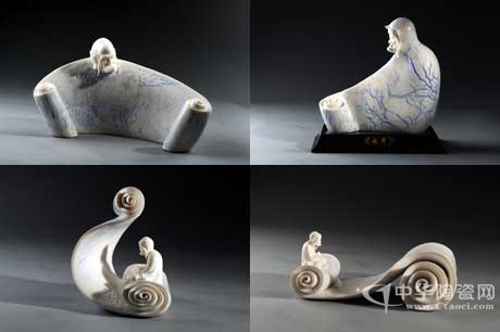 徐才提欣喜于這項(xiàng)技術(shù)的發(fā)明,并為該技術(shù)申請(qǐng)了專(zhuān)利(版權(quán)號(hào):13-2009-F-195),更是獨(dú)家采用窯變青花藍(lán)釉為背景,靈活運(yùn)用到他的瓷雕藝術(shù)創(chuàng)作中。其中,《悟》系列、《孔子》等作品,以窯變青花藍(lán)釉為背景,首創(chuàng)以中國(guó)特有的卷書(shū)為主體,人書(shū)合一、妙趣天成。作品以小喻大,融智慧、歷史、文化、藝術(shù)于一身。鑒于此,《悟》系列作品在2009年“閩龍杯”全國(guó)陶瓷原創(chuàng)設(shè)計(jì)電視大獎(jiǎng)賽總評(píng)選中榮獲優(yōu)秀獎(jiǎng)。