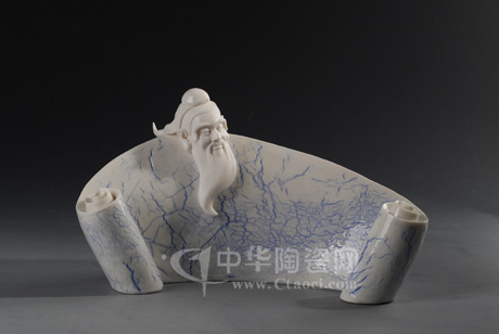 特別是窯變青花藍(lán)釉的研究成功,不只是在陶瓷科技上作出了突出的貢獻(xiàn),更是將中國(guó)白瓷雕藝術(shù)推上了一個(gè)新臺(tái)階,豐富了陶瓷文化內(nèi)涵。徐才提介紹說(shuō):“一道道可遇不可求的窯變裂紋,象征著‘大千世界,千變?nèi)f化,功到自然成’的禪宗思想。藍(lán)色代表海洋,象征著猶如大海般的淵博知識(shí)。”