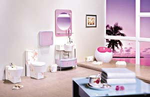 在衛(wèi)浴空間,增加一兩件手繪潔具,它能讓整個環(huán)境充滿雅致雋永的氛圍。由于每一款陶瓷均手工繪制而成,故保證了每一款的獨有性,并且花色決不雷同,具有很 好的收藏價值。不少手繪瓷磚被用作裝飾的背景墻,而手繪潔具被當(dāng)成工藝品擺放。相比普通陶瓷,手繪陶瓷價格要高出30%~50%,限量版售價更高。對許多 手繪陶瓷廠商來說,單款銷量不大,但風(fēng)格一致卻能帶來成套銷售的作用。