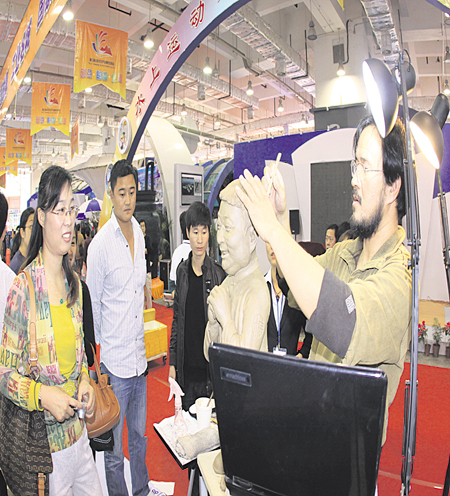 陶藝大師尹寶亭現(xiàn)場(chǎng)制作人物肖像陶藝,通過一張簡(jiǎn)單的肖像照,將人物一顰一笑表現(xiàn)的淋漓盡致,使參觀者不禁對(duì)其精湛的技藝贊嘆不已。