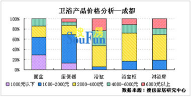 浴室柜、淋浴房?jī)r(jià)格主要分布在2000-4000元區(qū)間,市場(chǎng)覆蓋率均在50%以上,高于重慶地區(qū)市場(chǎng)覆蓋率。