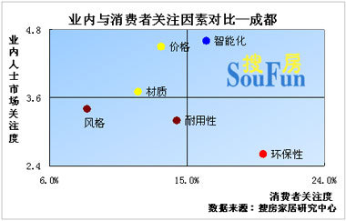 從業(yè)內(nèi)與消費(fèi)者關(guān)注因素的對(duì)比可以看出,一方面,衛(wèi)浴渠道商和經(jīng)銷商對(duì)智能化的關(guān)注度最高,而智能化對(duì)消費(fèi)者的影響也較大,因此,業(yè)內(nèi)只需保持對(duì)智能化的關(guān)注即可;另一方面,消費(fèi)者對(duì)環(huán)保性最為關(guān)注,而業(yè)內(nèi)卻對(duì)其的關(guān)注度排在最后,因此,渠道商和經(jīng)銷商需要加強(qiáng)對(duì)環(huán)保的關(guān)注,以爭(zhēng)取到更多的消費(fèi)者。
