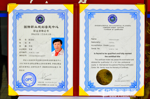 2010年9月2日,戴云藝瓷研究所所長兼藝術總監(jiān)、中國民間工藝大師、福建工藝美術學會會員、中華傳統(tǒng)工藝大師陳國欽被授予國際注冊工藝美術大師職業(yè)資格證書。