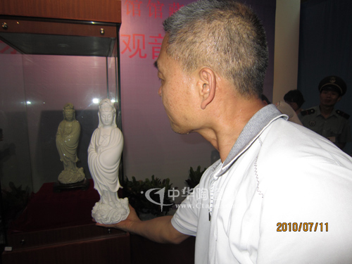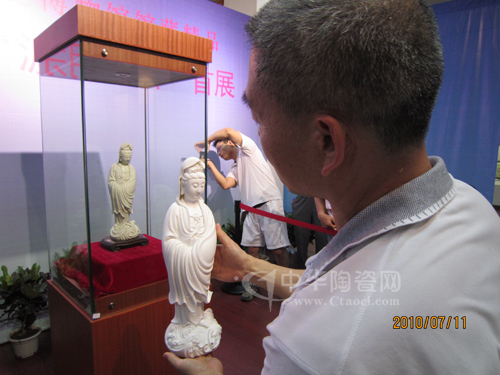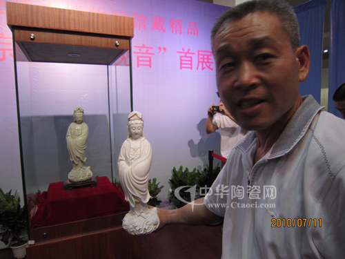 由于對(duì)何朝宗作品的癡迷,對(duì)瓷塑藝術(shù)的熱愛,每次聽到哪個(gè)博物館收藏有何朝宗的作品,哪里有何朝宗的作品展示,他都會(huì)抽空去觀看,他相信只有更深層次、更全面地了解何朝宗,才能臨摹到位并創(chuàng)作出更好的瓷塑作品。功夫不負(fù)有心人,他的執(zhí)著終于得到了回報(bào)。此次他將自己臨摹的作品在現(xiàn)場(chǎng)與何朝宗的《渡海觀音》做對(duì)比,作品的準(zhǔn)確度得到了現(xiàn)場(chǎng)的一些專家、學(xué)者的肯定,迎來(lái)了很多媒體的競(jìng)相報(bào)導(dǎo)。(蘇曉霞)