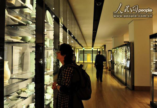 外國(guó)游客專注地參觀中國(guó)展柜 攝影:于世文