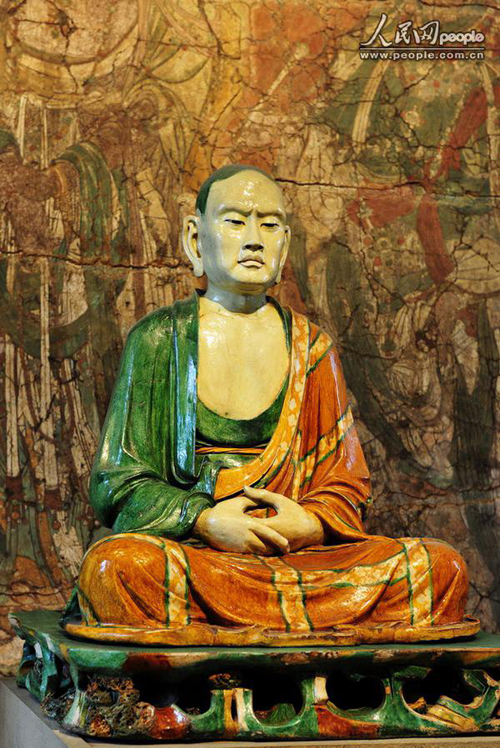 大英博物館中國(guó)館館藏的中國(guó)敦煌壁畫(huà)色彩艷麗的菩薩 攝影:于世文