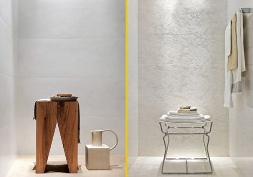 左圖Marazzi推出的ConCreta將粘土和礦物水泥的純凈特性發(fā)揮到了極致,用現(xiàn)代的方式表現(xiàn)了作品色彩和材質(zhì)上的主題對(duì)比。右圖的Stonevision則表現(xiàn)了大理石那種經(jīng)典的優(yōu)雅氣質(zhì)。