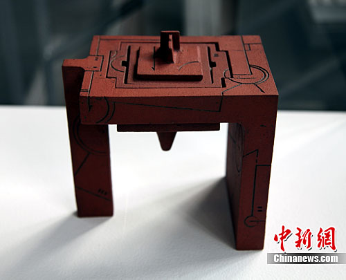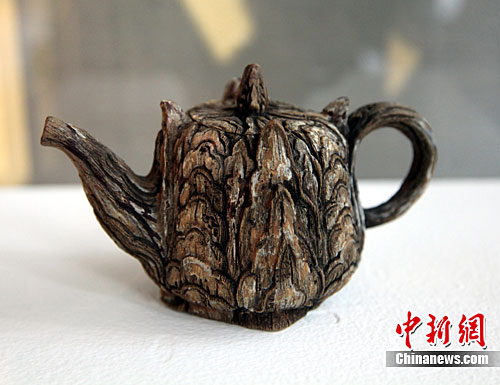 11月2日,第三屆臺灣金壺獎陶藝設(shè)計競賽展近日在臺北縣鶯歌鎮(zhèn)陶瓷博物館開幕。圖為展出的銅獎茶壺。中新社記者 陳立宇 攝