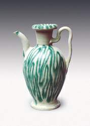 收藏家、世華藝術(shù)館館長趙月汀巡走在自家藏品的展區(qū),熱心地為同行和記者做“講解員”,介紹自己的古陶瓷珍藏。他手指“五代北宋年間的越窯秘色瓷刻團(tuán)花紋壺”自豪地說:“這把壺世界上僅存4件,數(shù)我的收藏最美觀最精致。”