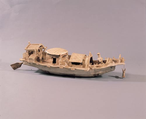 原件于1954年廣州沙河頂出土,已調(diào)中國歷史博物館。這是一艘內(nèi)河或沿海航行的客貨兩用船,分前中后三艙。船尾有望樓,船前系錨,后有舵。船頭兩邊安插漿架三根,艙內(nèi)橫架梁擔(dān)八條,以加強船體結(jié)構(gòu)的牢固及加深吃水量。“舵”的發(fā)明是我國古代人民對世界造船史的一大貢獻(xiàn)。1958年,英國著名科學(xué)家李約瑟博士為編寫《中國科學(xué)技術(shù)史》一書訪華,在廣州博物館意外發(fā)現(xiàn)了這艘東漢陶船,驚喜萬分。此陶船證實了李約瑟之前提出的偉大推想:中國在公元三世紀(jì)或更早時期就發(fā)明了船尾舵,比歐洲早了近一千年,此結(jié)論隨后被李約瑟寫入《中國科學(xué)技術(shù)史》。(記者 趙婷)